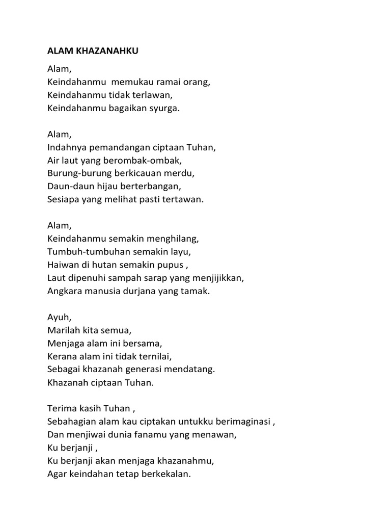 Baik ketajuban sang penulis puisi dengan alam itu sendiri puisi tentang alam yang rusak. Malay as foreign language grade/level: Banjir, tsunami dan tanah longsor merupakan fenomena alam yang terjadi di seluruh dunia. Pencemaran sajak tentang alam sekitar. Allah telah mencipta alam ini seimbang untuk kemakmuran munusia.